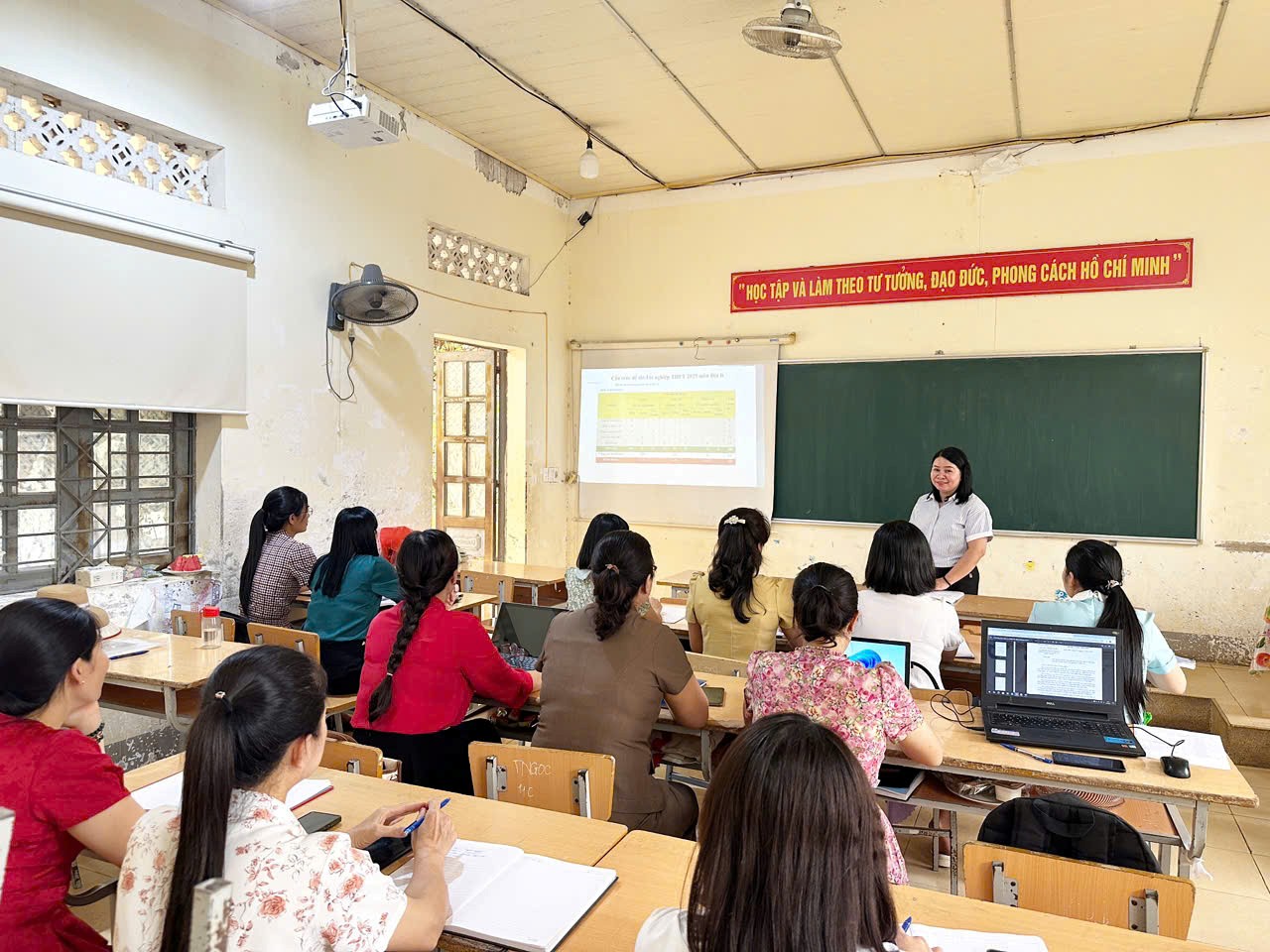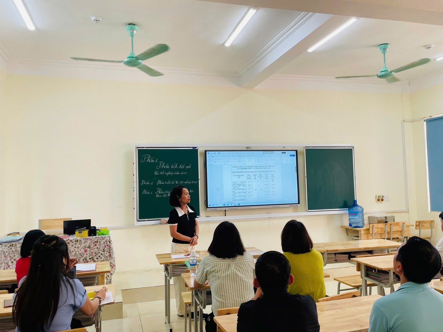Tiếp đó, giáo viên tại các bộ môn tiến hành phân tích cấu trúc đề thi tốt nghiệp THPT các môn học, tập trung vào ba phương diện: cấu trúc đề, phạm vi nội dung kiến thức và mức độ câu hỏi. Các ý kiến đều thống nhất rằng đề thi có sự phân hóa rõ rệt, tăng cường yêu cầu vận dụng, vận dụng cao, chú trọng đánh giá năng lực học sinh thay vì chỉ kiểm tra ghi nhớ kiến thức. Việc phân tích kĩ các dạng câu hỏi giúp giáo viên nhận diện chính xác xu hướng ra đề, từ đó điều chỉnh nội dung dạy học và ôn tập phù hợp.